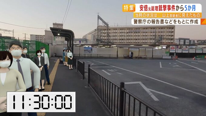 銃撃を許した大きな要因の1つとされる安倍元総理後方への警戒の緩さ。当時、山上容疑者の目にはどう映っていたのか。容疑者の目線で見えていた様子をCGで再現した。