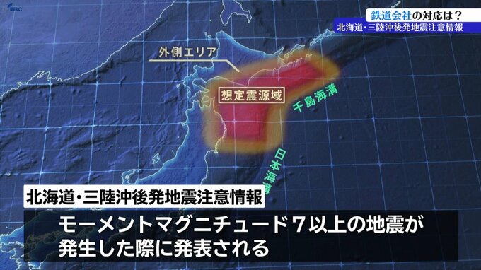 「後発地震注意情報」は、北海道の根室沖から東北地方の三陸沖にかけての巨大地震の想定震源域やその周辺で、「モーメントマグニチュード」7以上の地震が発生した際に発表されます。
