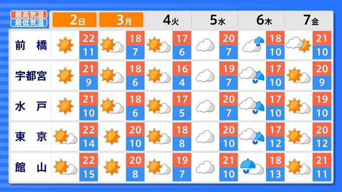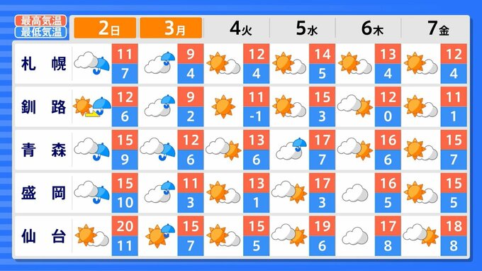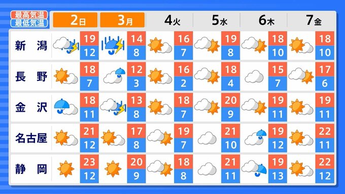 近畿・中国・四国・九州の週間天気予報と予想気温