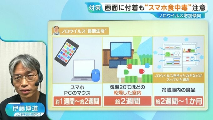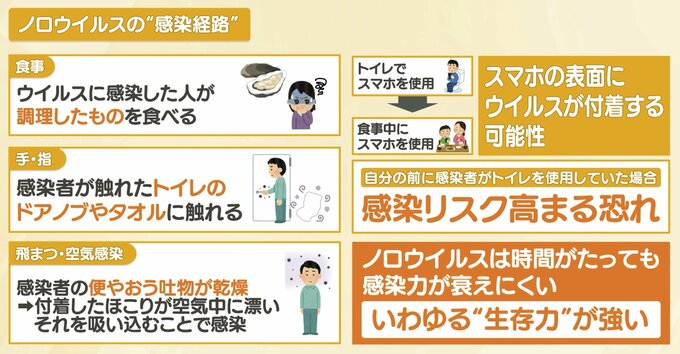 スマートフォンの表面にもノロウイルスが付着する可能性があります。