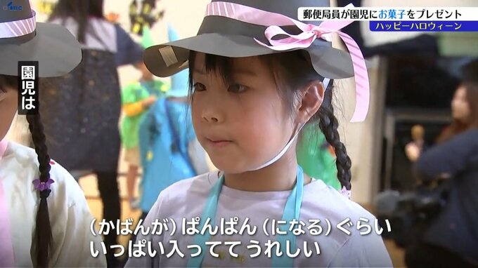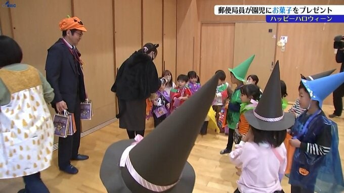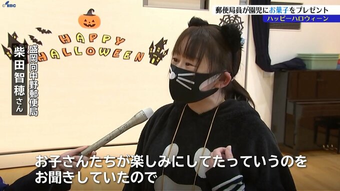 これに合わせて盛岡市内のこども園では郵便局員が訪れ、かわいらしい仮装をした園児たちにお菓子をプレゼントしました。