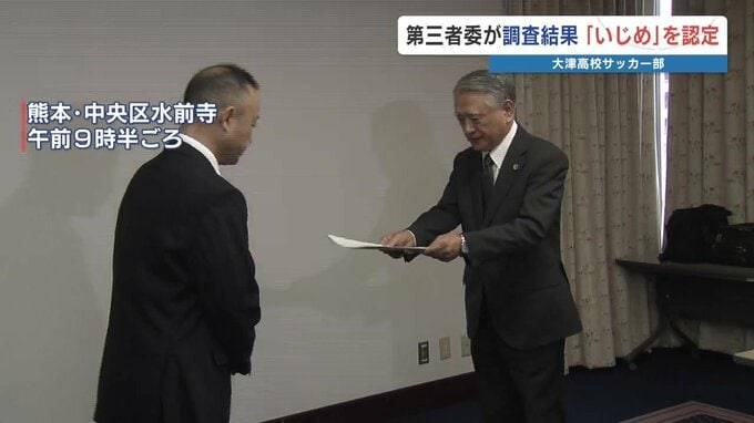 熊本県立大津高校サッカー部の部員だった男性が、いじめ被害を訴えた問題で、第三者委員会が「いじめ」と認定する調査結果を報告しました。