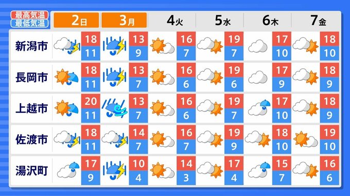 11月3日の文化の日までの3日間のお天気について、新潟地方気象台によりますと、新潟県内では1日から大気の状態が非常に不安定となり、雷を伴った激しい雨の降るところがある見込みです。雨雲レーダーの予想画像を…
