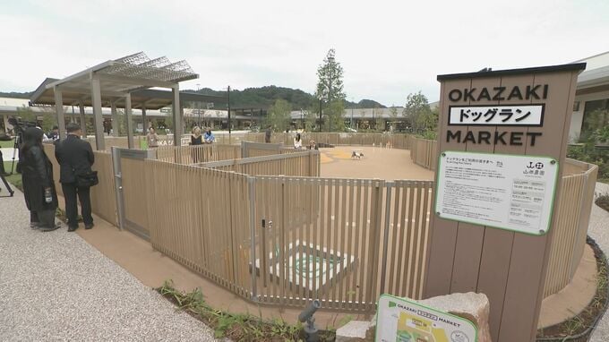 緑豊かな公園型施設「オカザキマーケット」。約4200平方メートルの敷地には、子どもたちが遊べる遊具のほか、ドッグランも併設され、家族全員で楽しめます。