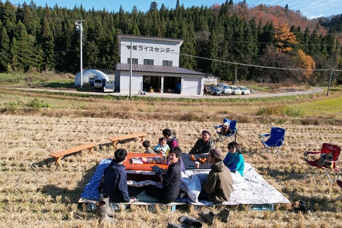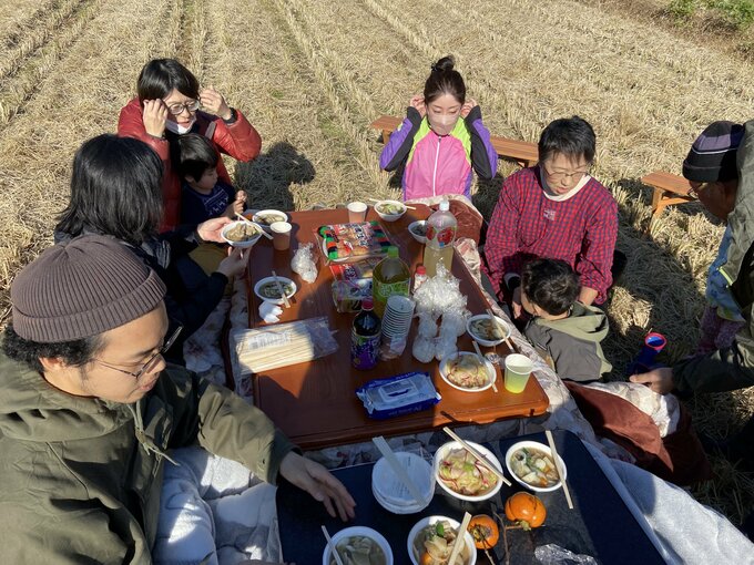 使用許可を得て、町にある広大な田んぼを貸し切り、ど真ん中にこたつを置いて、豚汁や新米を食べながらみんなで語り合うといいます。