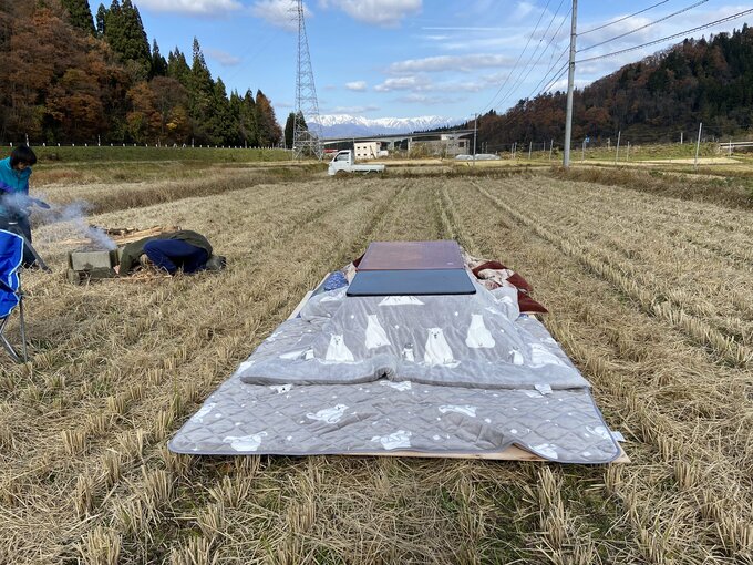 青津京介さん「町にある田んぼを貸し切って、そこにこたつを置いたり、たき火を焚いたりして団らんするものです」