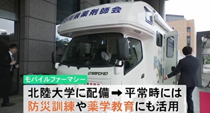 モバイルファーマシーは今後、北陸大学に配備され、平常時には防災訓練や薬学教育にも活用されます。