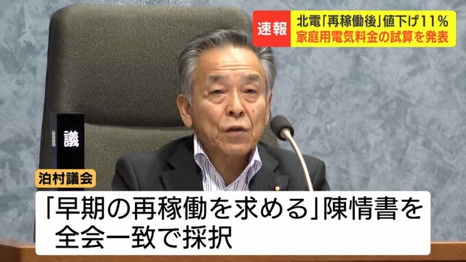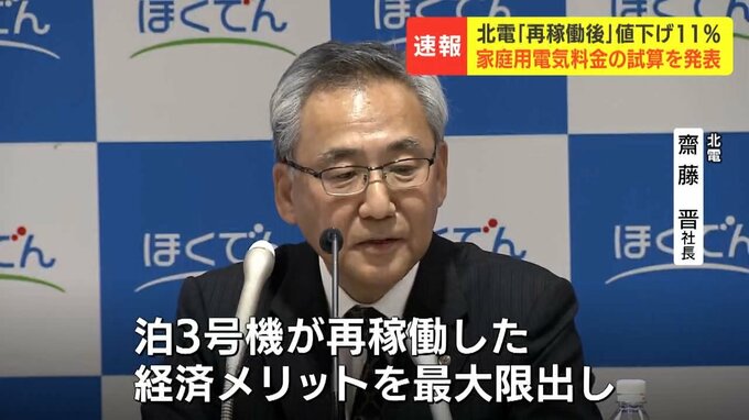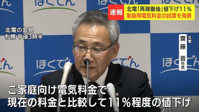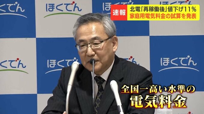 北電は31日午後、再稼働後の電気料金について家庭用で11%値下げすると発表しました。