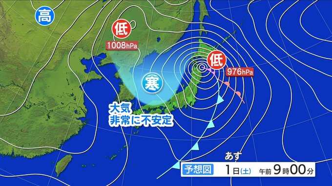 1日(土)上空にこの時期としては強い寒気 大気の状態が不安定