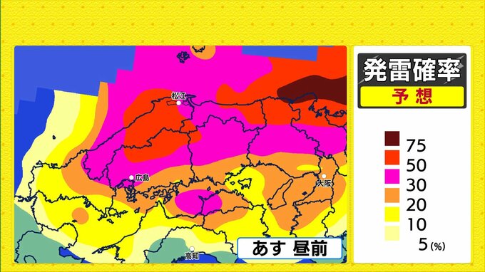 あす1日(土)は、西高東低の気圧配置となり、上空にはこの時期としては強い寒気が入る見込みです。そのため、大気の状態が非常に不安定となります。北部では、午前中雨が降り、雷雨となるところがあるでしょう。南部では、午前中晴れていても、急な雨にご注意ください。午後は各地で日差しが届き、最高気温は、20℃に届くところもあるでしょう。朝の冷え込みは、けさと同じくらいでゆるい予想です。