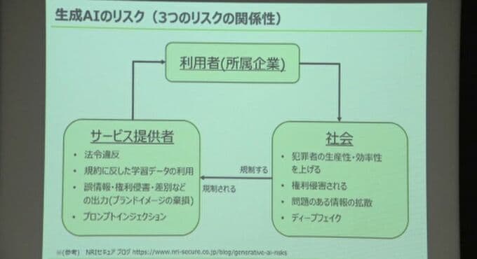 講師「生成AIのリスクは大きく3つに分類できます」
