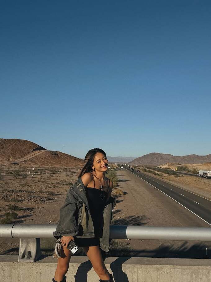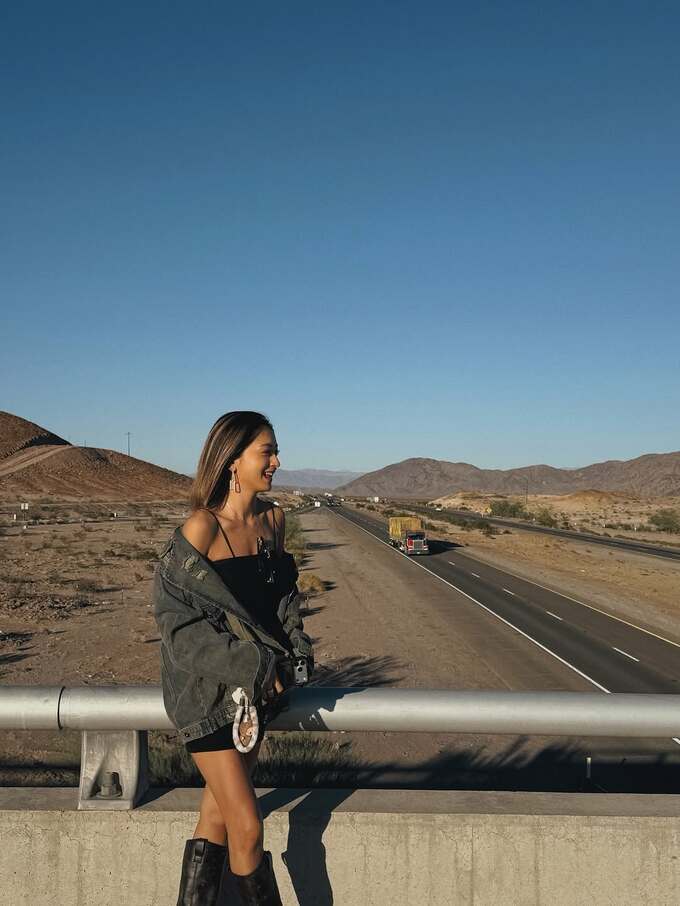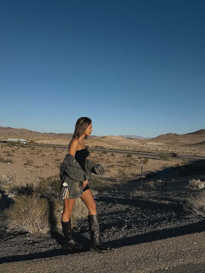 みちょぱさんは「本日27歳になりました〜♡」と報告。「いつもとまた違った場所で誕生日を迎えました!!」とテキストしていて、投稿された写真では、ちょっと日焼けしたような肌のみちょぱさんがグレー系のデニムのジャケットに黒のビスチェとミニを合わせ、素足に黒のブーツというワイルドな装いで、荒野に佇んでいます。
