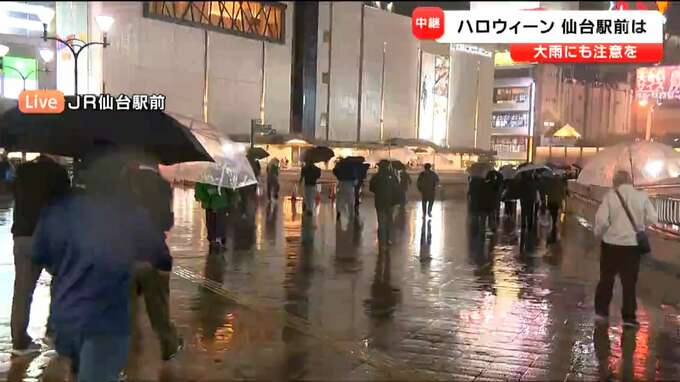 10月31日ハロウィーン、そして11月1日からは3連休ということもありまして、JR仙台駅前はかなり人出が多く混雑している状況です。
