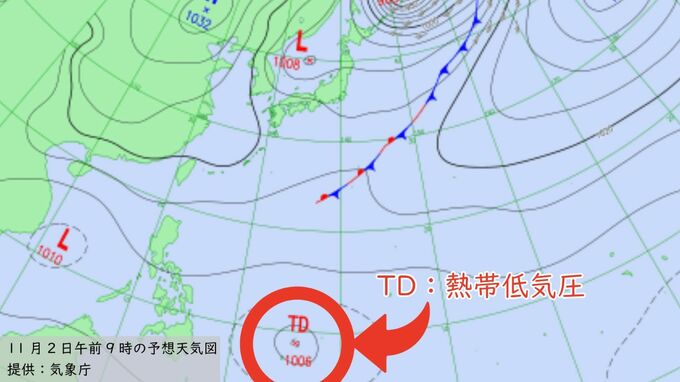 気象庁の天気図を順に追ってみていくと、熱帯低気圧は北へ進んでいくとみられます。【画像②③】