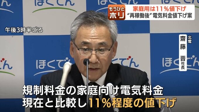 北電は、31日午後、再稼働後の電気料金について家庭用で11%値下げすると発表しました。