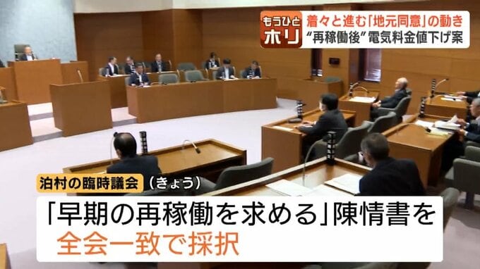 泊村では、31日の臨時議会で「早期の再稼働を求める」陳情書を全会一致で採択。「同意」を正式に決めたのは泊村議会が初めてです。