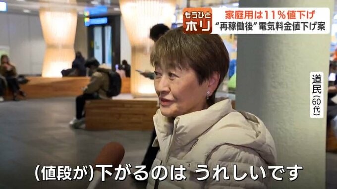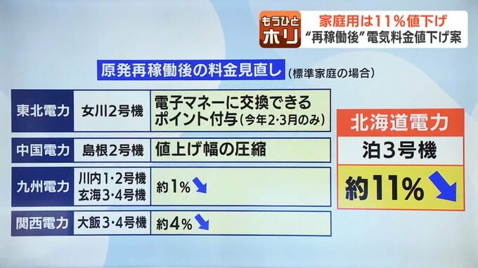 「せっかく(泊原発を)稼働するなら、もっと下がるのかなというイメージ、11%がどうしてなのか?20%とか(値下がりすると)だいぶ感覚的に違うと思う」