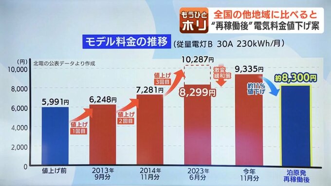 2013年以降、北電は3回に渡って大幅な値上げをしていて、その上げ幅は5割ほどに…道民の暮らしには大きな負担でした。