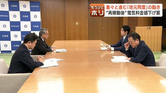 そして、31日午後5時半、北電の齋藤社長は道庁を訪れ、鈴木知事に再稼働後の値下げ幅について説明しました。