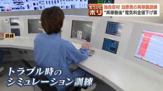 ここは泊原発敷地内の「訓練室」。トラブルに対応するシミュレーションが行われていました。