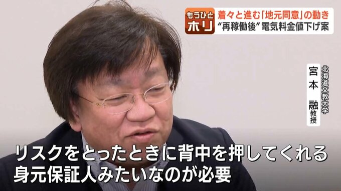 旧通産省出身で、北海道文教大学の宮本融教授は北電が「11%程度」の値下げ幅を打ちだした背景には、再稼働に向け、地元の同意を得たい狙いがあるとみています。