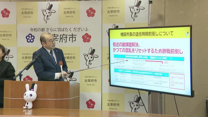 太宰府市の楠田大蔵市長は31日の定例会見で任期満了を前に退任時期を前倒しすると発表しました。