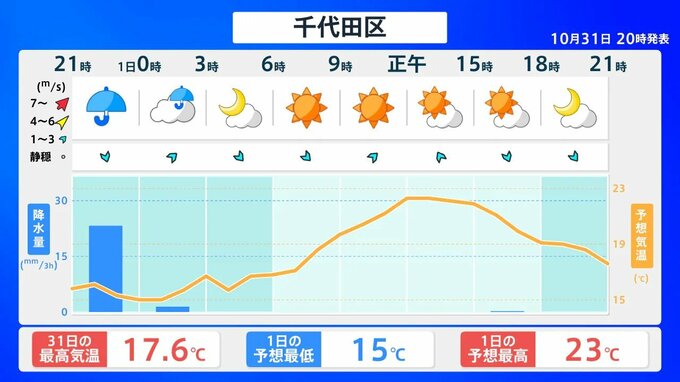 あす1日にかけ東日本は「土砂災害」「低い土地の浸水」「河川の増水」「強風」「高波」に注意・警戒を 西日本~北日本は「落雷」「竜巻などの激しい突風」に注意を 今後24時間の天気シミュレーション【31日午後11時現在】 RSK山陽放送 2025年10月31日(金) 23:03 国内 全国各地の今後24時間の天気予報は? 【画像①~⑧】は、今後24時間の全国各地の天気シミュレーションです。 【画像①】 【画像②】 【画像③】 【画像④】 【画像⑤】 【画像⑥】 【画像⑦】 【画像⑧】
