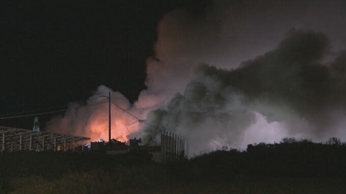 資材置き場にはアルミを中心に金属資材があり、そこから火が上がったとみられています。
