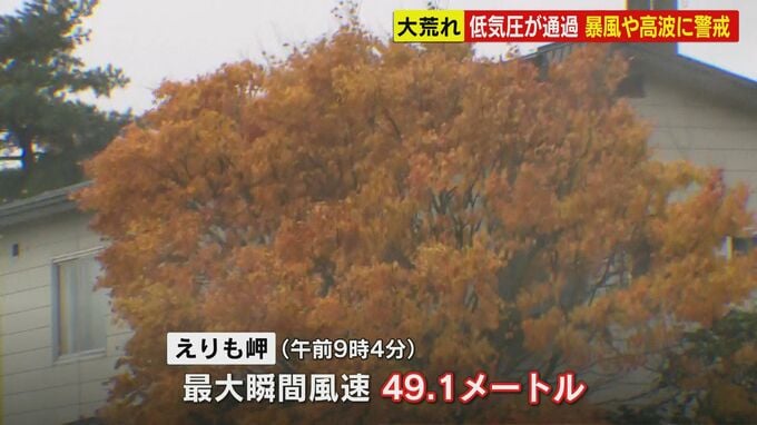 発達中の低気圧の影響で、北海道内は大気の状態が非常に不安定となり、えりも岬では、午前9時すぎに最大瞬間風速49.1メートルを観測しました。