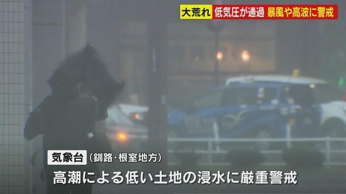 気象台は、釧路と根室地方では、夕方にかけて高潮による低い土地の浸水に厳重に警戒するよう呼びかけています。