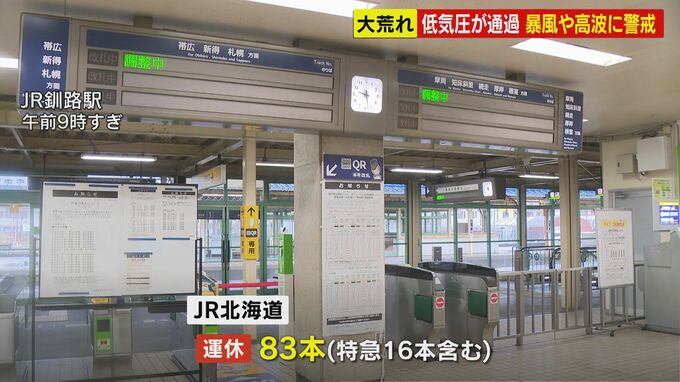 この影響で、JR北海道は特急列車16本を含む83本の運休を決めています。