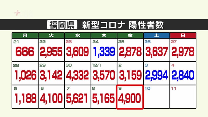 新型コロナウイルスの感染状況です。福岡県では9日、新たに4900人の陽性が確認されました。発表自治体別の内訳は、福岡市が1540人、北九州市が726人、久留米市が294人などとなっています。70…