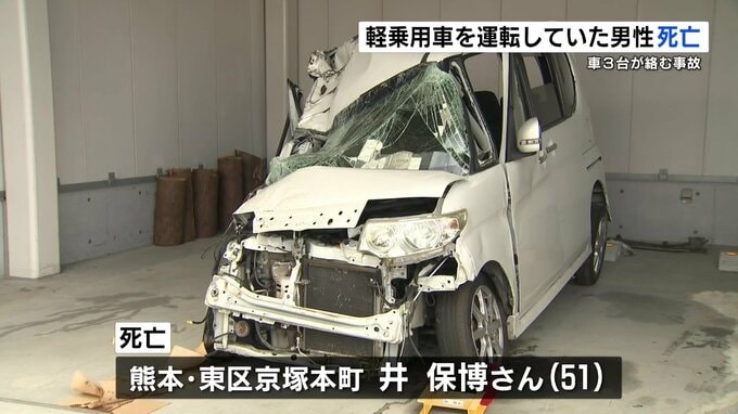 1日午前、熊本市の市道で車3台が絡む事故があり、軽乗用車を運転していた男性が死亡しました。警察によりますと1日午前7時20分ごろ、熊本市北区清水岩倉の市道で、軽乗用車が対向車線を走っていた乗用車2台と接触…