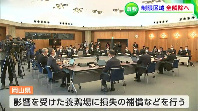 10月から倉敷市で立て続けに発生した高病原性の鳥インフルエンザの防疫措置が終わったことから、岡山県はあす(10日)午前0時に移動制限区域を全て解除することを決めました。