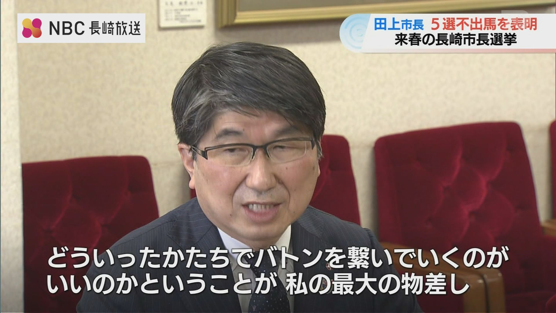任期満了に伴う来年4月の長崎市長選挙に、田上富久市長が立候補しないことを9日表明しました。