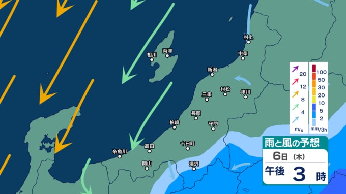3. 【新潟県の天気予報】あす2日はどしゃ降りの雨となる所も 沿岸部を中心に風も強まる見込み【3時間ごとの雨風シミュレーション・1日午後10時更新】