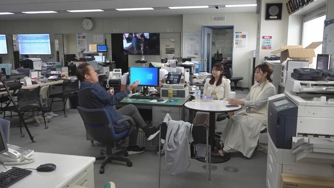 左は木村和也アナウンス部長 右は福居万里子アナウンサー