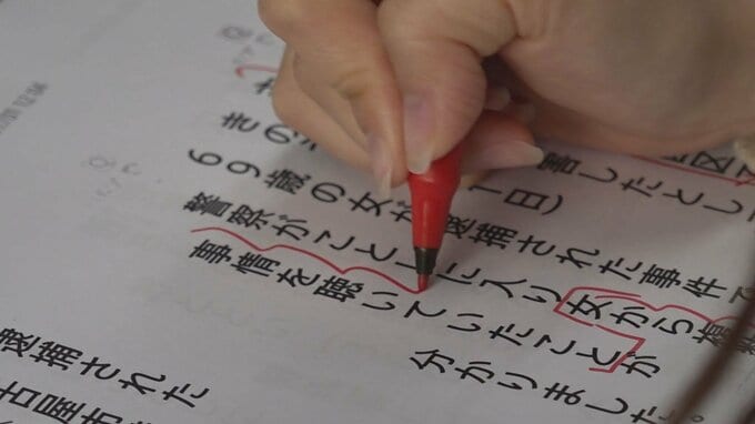 固有名詞の読み方やスムーズに読むためのポイントを、原稿1本1本、1枚1枚、1行1行に書き込む。