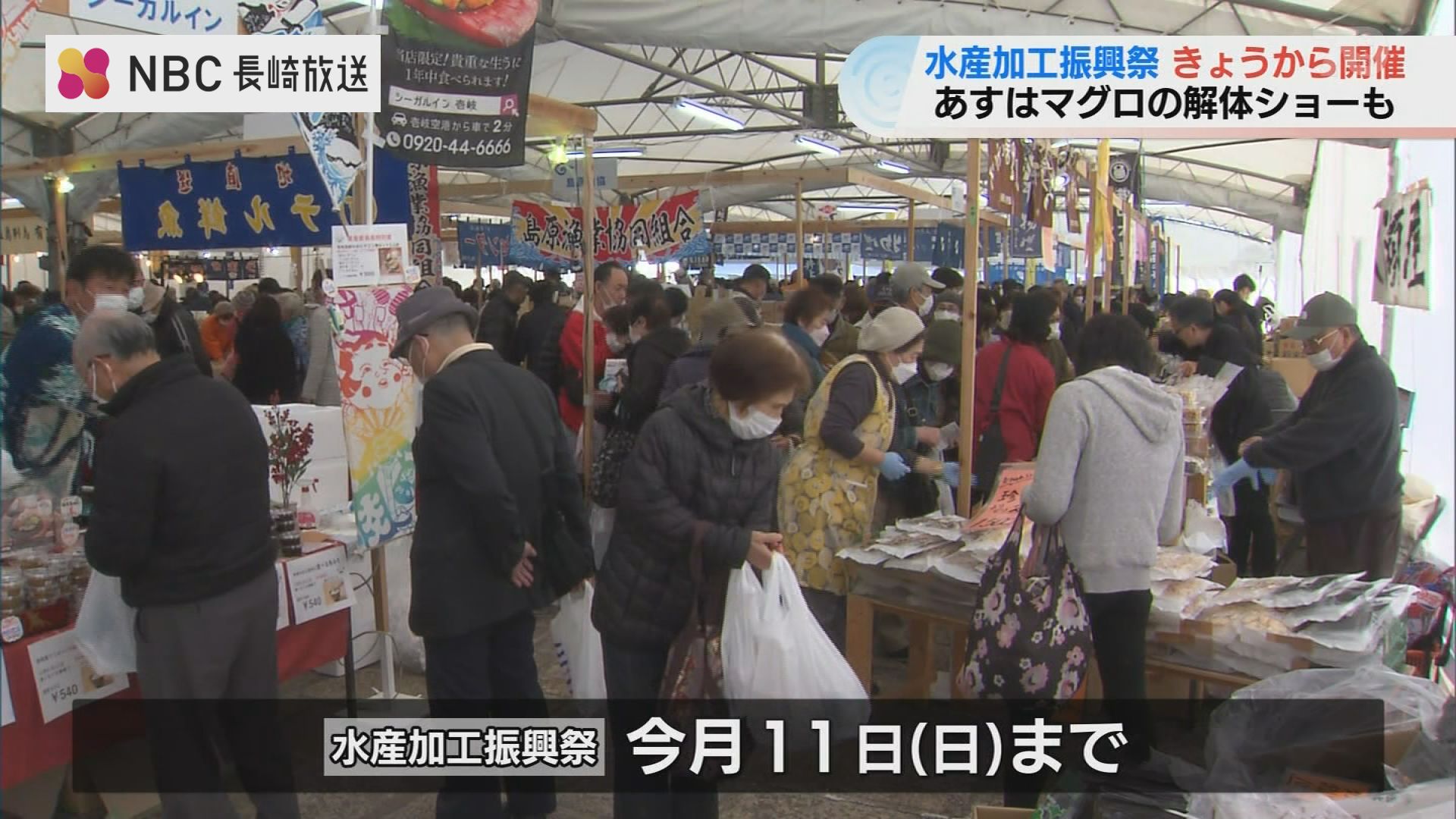 水産加工振興祭は11日まで、長崎市元船町のおくんち広場で開かれています。