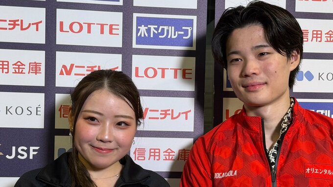 紀平は初のアイスダンスに「3年ぶりの試合プラス、アイスダンスの初試合ということで、すごくドキドキの大会ではあったんですけど、ちゃんと落ち着いて楽しく滑れたのはすごく良かったなと思います」と梨花スマイル。