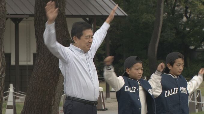 初日の1日は、正門近くの広場で広沢一郎市長らが参加してラジオ体操が行われました。