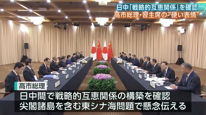 31日、APECにあわせ、約1年ぶりに実現した日中首脳会談。お互い、硬い表情に終始しています。会談では、戦略的互恵関係を構築することを確認しつつも、高市総理は尖閣諸島を含む東シナ海の問題について懸念などを伝えたといいます。