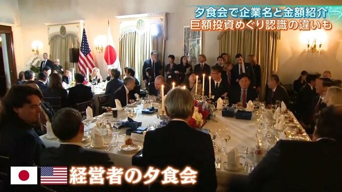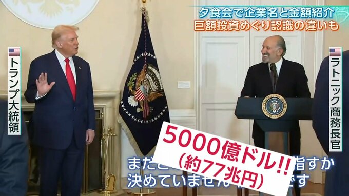 その夕食会の前に行われたのが、投資に関する共同文書の署名式。ラトニック商務長官が金額を読み上げながら、各企業の投資を次々に紹介します。