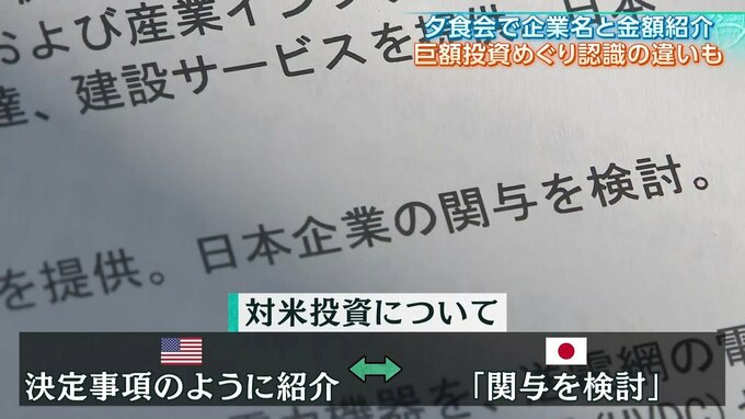 一方で、両国に認識の違いも垣間見えます。署名式で、決定事項のように金額を読み上げながら紹介するアメリカ側に対し、日本側の資料では、「関与を検討」と記される案件も多くあります。