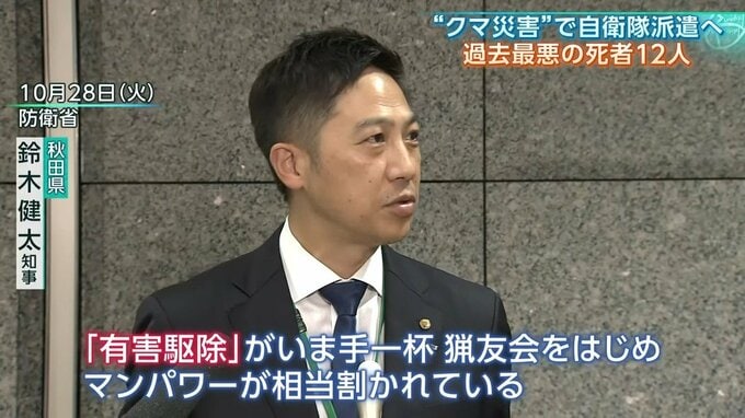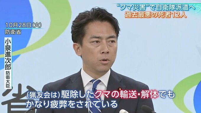 「(猟友会は)駆除したクマの輸送・解体でもかなり疲弊している。『駆除を自衛隊にやって欲しい』という思いではなくて、『止むにやまれず自衛隊に』という思いだと聞いています」