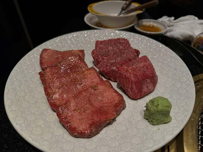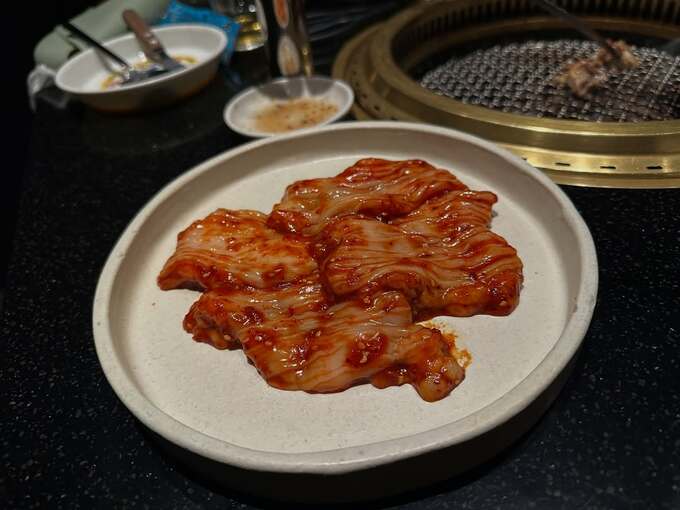 投稿された写真には、焼き肉店での食事の様子が詳しく記録されています。厚みのある牛肉の切り身や、網の上で焼かれている肉、タレに漬けられたホルモン、キムチなどのサイドメニュー、さらにはキムチチャーハンまで、豊富な料理が並んでいる様子がうかがえます。