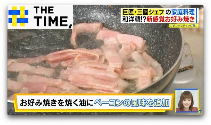 そして、焼く時に使う米油に【ベーコンを加える】のも三國流。