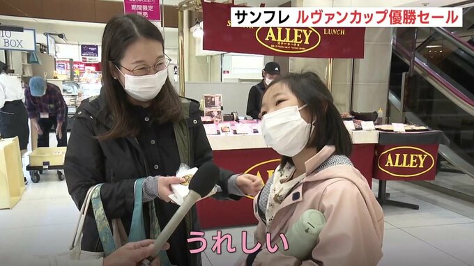 地下にある食品売り場でも、限定価格の商品が並び、優勝への喜びの声が聞かれました。