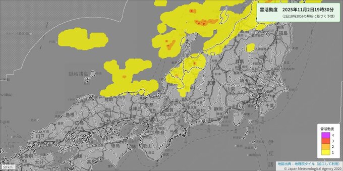気象庁によりますと、近畿地方の上空約5500メートルに3日にかけて、氷点下24度以下のこの時期としては強い寒気が流れ込む見込みです。このため近畿地方では、2日夜遅くから3日夕方にかけて、大気の状態が非常に不安定となり、局地的に雷雲が発達するでしょう。
