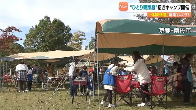 家庭の経済状況などにより子どもの体験の機会に差が出る「体験格差」を解消しようと、京都府南丹市でひとり親家庭の親子を招いたキャンプが行われました。 大勢のスタッフに迎えられたのは20組の親子45人。こ…